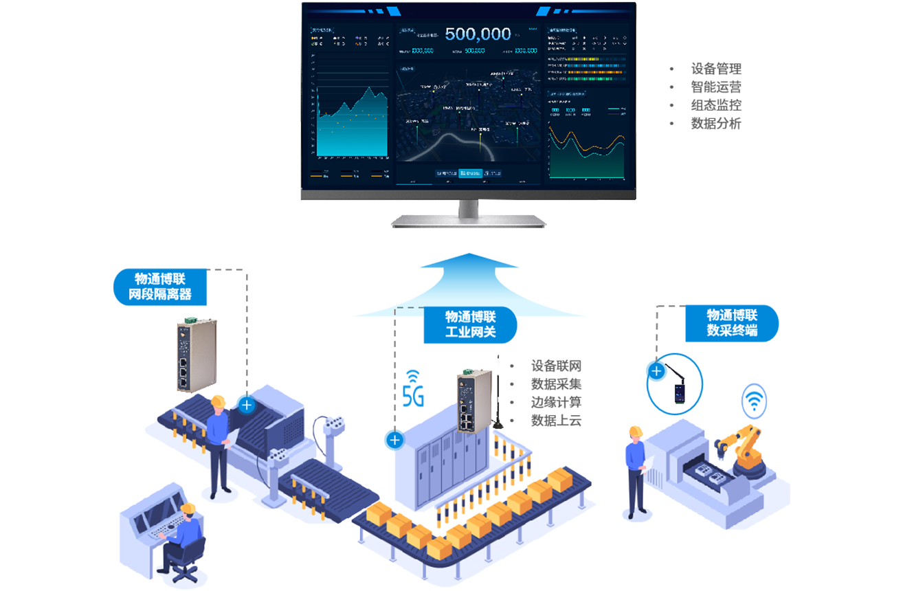 借助K8凯发天生赢家一触即发的工业智能网关,实时采集工厂各类设备的运行数据,如运行状态、温度、压力、转速等,将采集到的数据传输至设备管理平台,进行设备资产档案管理、运行管理、工单管理、采购管理、备件管理、维修管理、数据分析等,实现设备全生命周期管理。