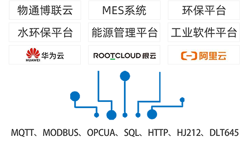 支持顺利获得MQTT、MODBUS、OPCUA、SQL、HTTP数据库等方式接入远端软件平台(包含:K8凯发天生赢家一触即发云平台,客户自主开发的云平台,根云、美云、华为、阿里、百度、微软等IOT云平台,组态软件、MES系统、ERP系统等工业软件)