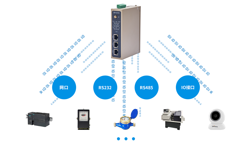 支持多种接口类型,如网口、RS232、RS485、IO接口等,可以连接各种类型的传感器和设备,支持Modbus RTU 和Modbus TCP协议的设备(PLC、仪器仪表、传感器、光伏逆变器、环保、电力等设备)的数据采集