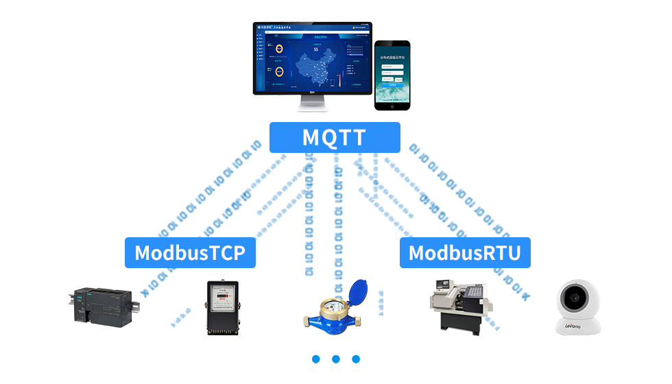支持采集各种Modbus-TCP和Modbus-RTU协议的设备数据,并将数据顺利获得MQTT协议上传到云平台