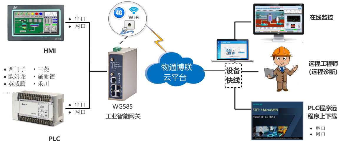 1. 搭建一条通往现场设备的安全管道,实现PLC的远程监控、调试和程序上下载等维护工作。