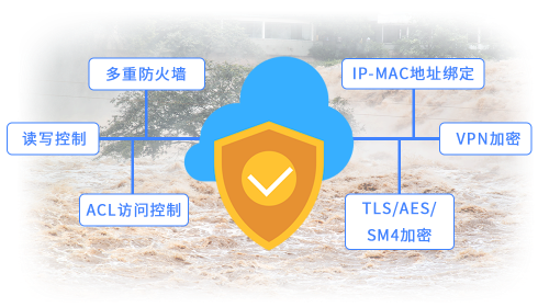 采用多重加密保护方式,顺利获得多重防火墙、ACL访问控制、读写控制、IP-MAC地址绑定、TLS/AES/SM4加密、VPN加密等技术对传输的数据进行加密处理,防止数据被非法获取或篡改,保障了数据的机密性和安全性。