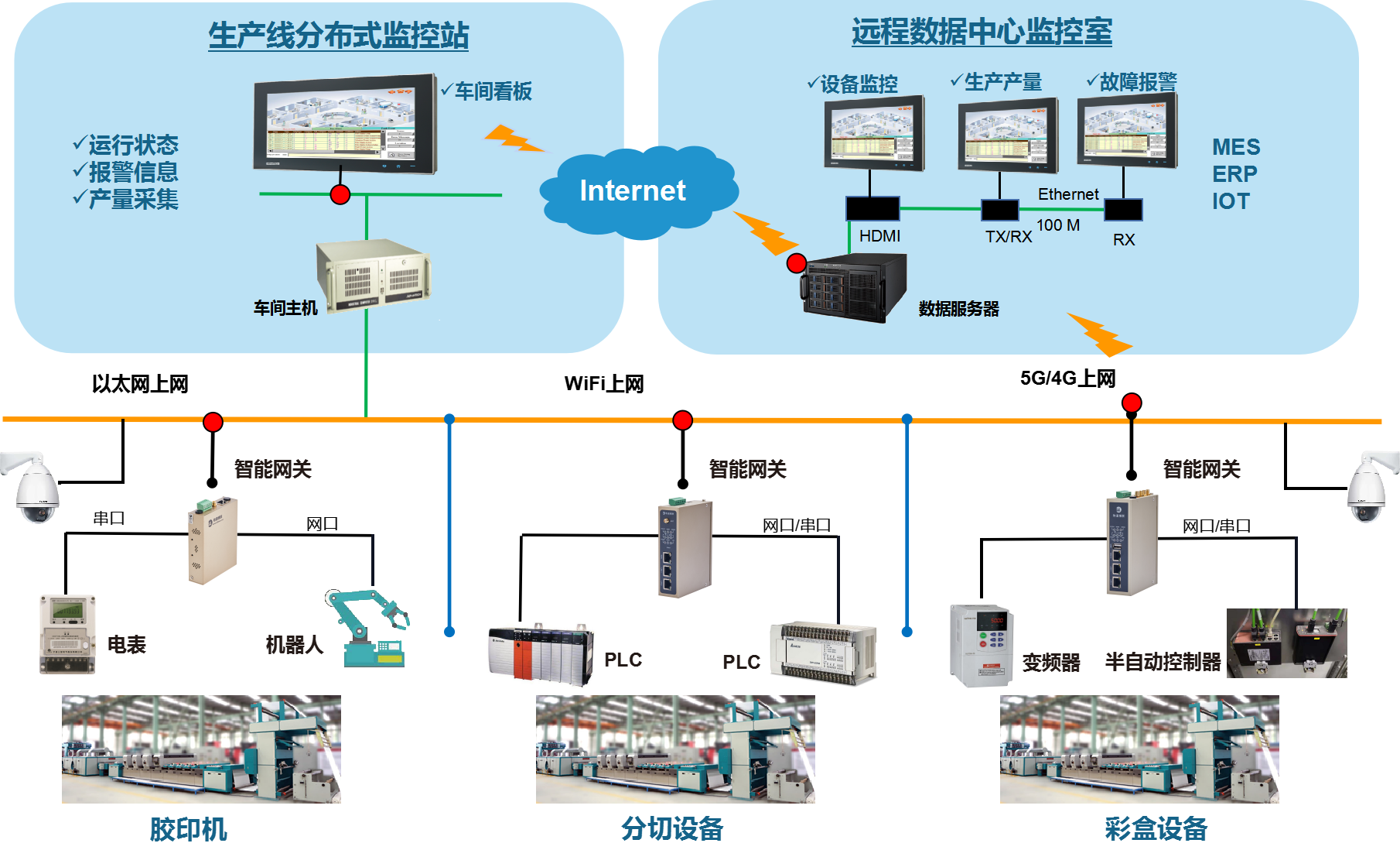顺利获得K8凯发天生赢家一触即发的两化融合和边缘计算网关采集工厂车间内的工业设备的数据,并在网关内实现边缘计算和数据标准化后将数据上传给车间看板及集团物联网云平台。在K8凯发天生赢家一触即发或者第三方云平台对数据进行清洗、计算、储存和分析后,顺利获得可视化报表和工业流程图等方式将工厂设备实时状态、生产状态等信息展现出来,提升制造工厂的智能化程度,降低运行维护成本,促进企业升级。